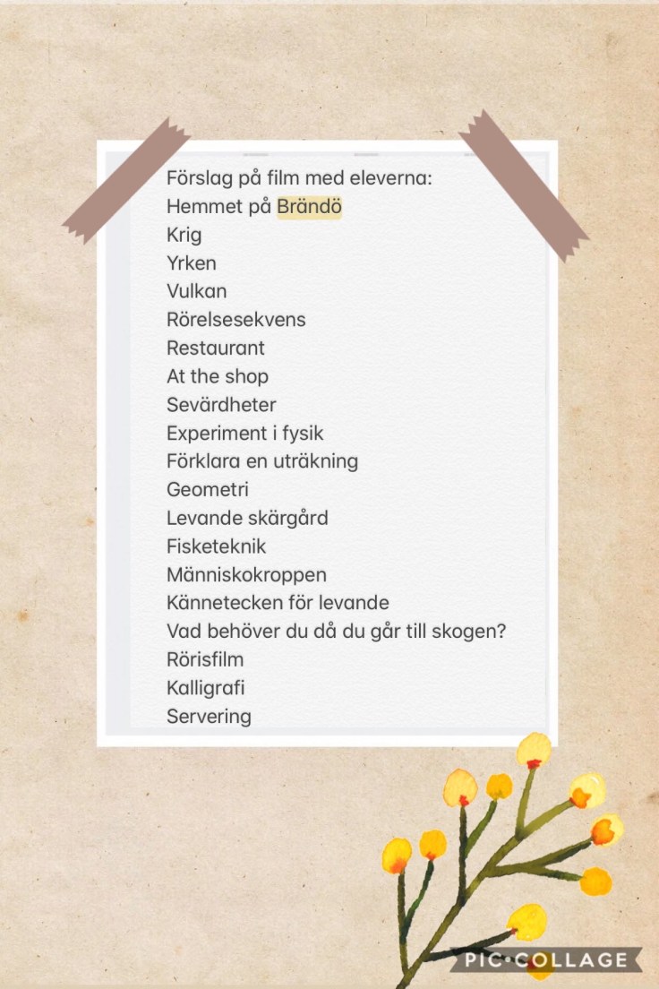 Här är lärarnas förslag på teman de kunde göra film om med eleverna. Bravo ni!